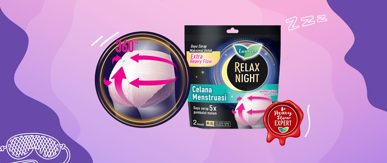 Selama masa pendarahan, kamu juga bisa menggunakan Laurier Relax Night Celana Menstruasi, yaitu celana menstruasi dengan proteksi bebas bocor 360O hingga ke pinggul dan daya serap 5x dari pembalut malam, sehingga tetap aman dari bocor saat tidur dengan posisi apapun maupun saat beraktivitas. Bahannya tipis dan selembut celana dalam katun dengan karet pinggang yang fit mengikuti bentuk tubuh sehingga nyaman digunakan.
