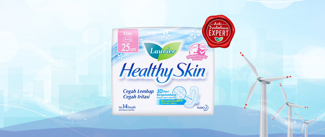 Untuk membantu mengurangi rasa tidak nyaman selama menstruasi, kamu bisa menggunakan Laurier Healthy Skin. Pembalut dengan inovasi baru 3D pori bergelombang yang membuat permukaan kulit tidak bersentuhan sepenuhnya denga pembalut sehingga meningkatkan 80% sirkulasi udara dan menjaga permukaan pembalut tetap kering. Dengan permukaannya yang lembut dan cepat menyerap, tak perlu worry lembap maupun iritasi lagi!