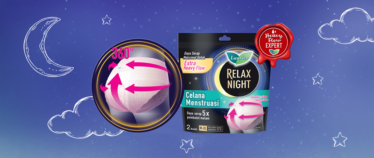Apabila mengalami pendarahan, gunakan Laurier Celana Menstruasi. Pembalut berbentuk celana dengan daya serap 5x pembalut malam ini memberi proteksi bebas bocor 360° hingga ke pinggul.. Laurier Celana Menstruasi juga tipis dan selembut celana dalam katun, serta dilengkapi karet pinggang yang fit mengikuti bentuk tubuh sehingga nyaman digunakan saat lagi extra heavy flow.
